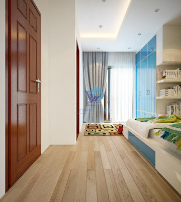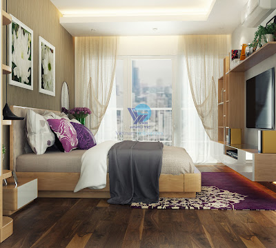 Phòng ngủ được thiết kế nhẹ nhàng và lãng mạn hài hòa thể hiện cái nhìn tinh tế của người thiết kế. Cửa lớn nhìn ra ban công và quang cảnh bên ngoài mang lại cho không gian căn phòng cảm giác tươi mới và sảng khoái mỗi ngày.