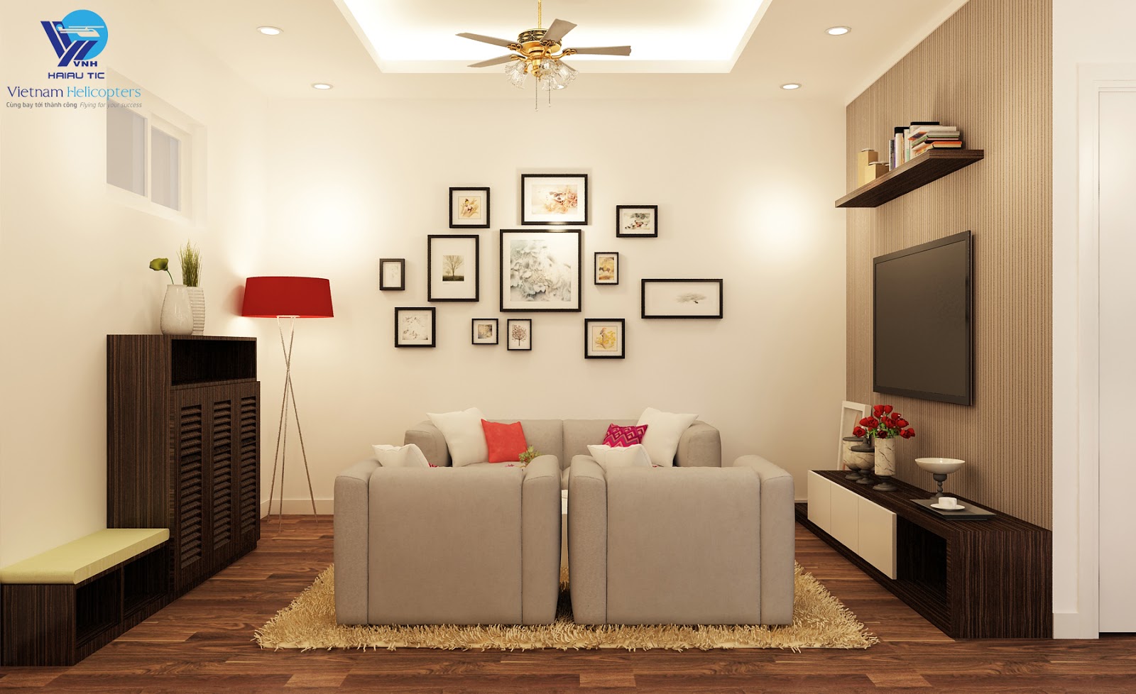 Phòng khách được thiết kế với gam màu trầm ấm làm chủ đạo mang đến không gian ngọt ngào ấm áp đến với mỗi gia chủ. Chỉ bằng những chi tiết nhỏ nhặt tinh tế cũng đủ làm cho ngôi nhà của chị Huệ mang đến sự nhẹ nhàng cũng như tối ưu hóa diện tích cho ngôi nhà của gia chủ.