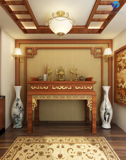 Không gian phòng thờ được thiết kế yên tĩnh, linh thiêng mang đến sự phù hợp từ không gian đến phong thủy mang đến một thể thống nhất dành cho gia đình anh Quý.