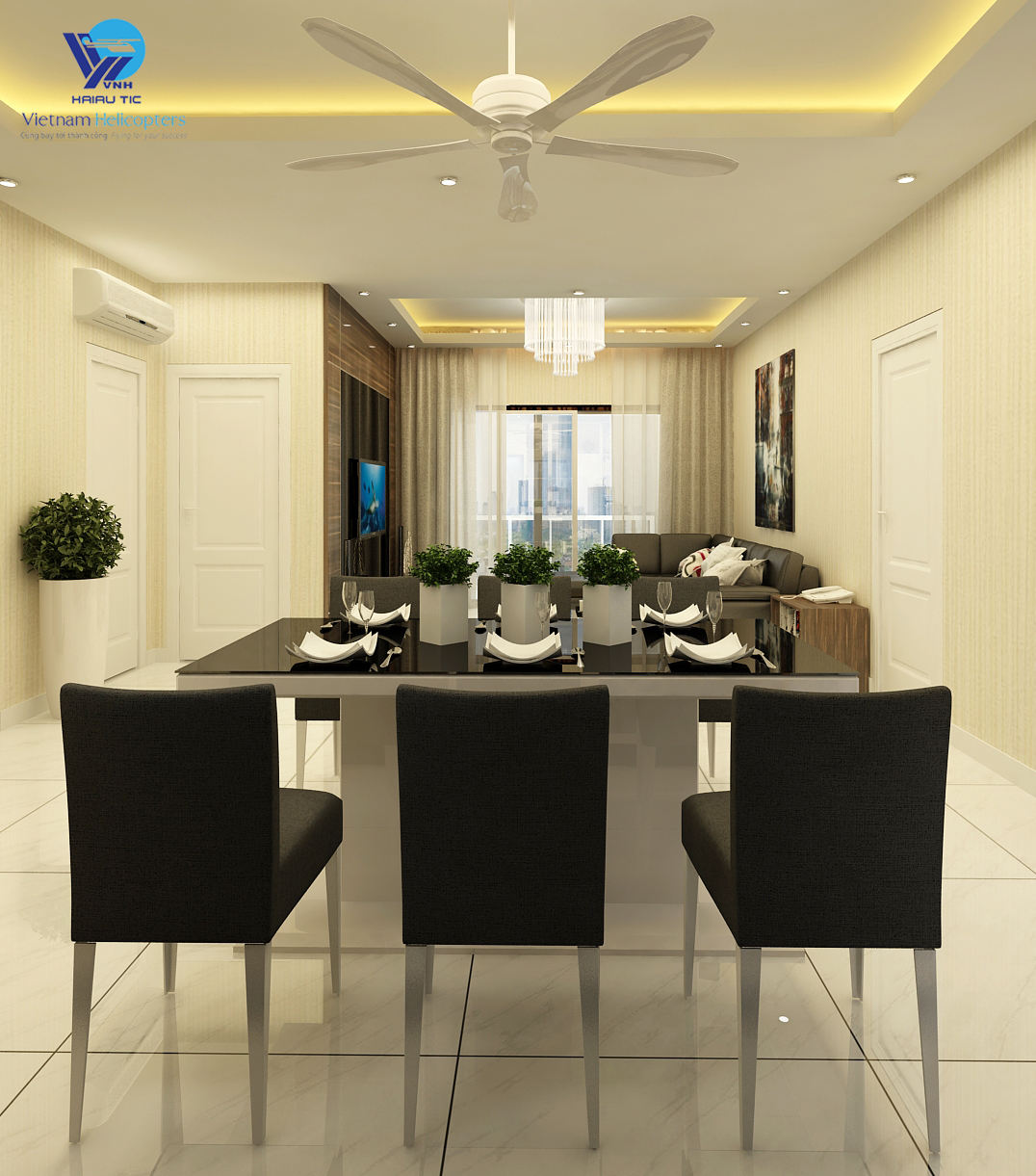 Bàn ăn được chọn với gam màu tối phù hợp với gam màu của toàn bộ không gian gia đình anh, không những mang tới những bữa cơm đầm ấm hàng ngày mà còn phù hợp với những bữa tiệc với gia đình và người thân.