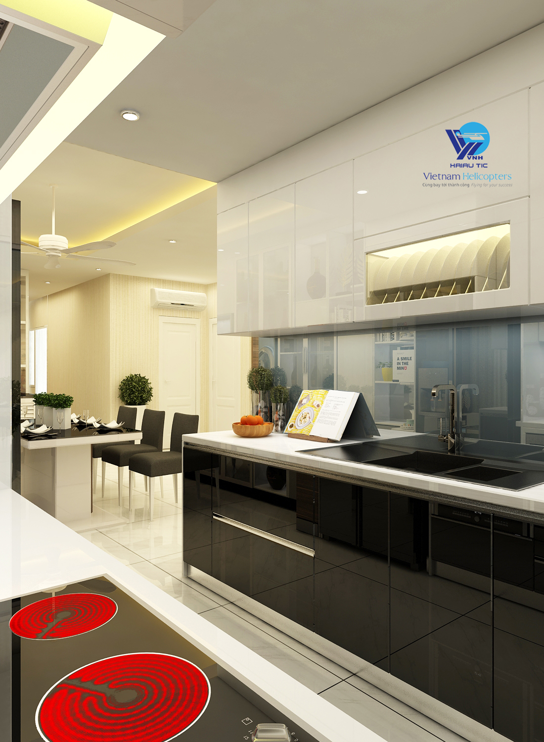 Phòng bếp được thiết kế phong cách hiện đại kết hợp cùng với đó là những tính năng ưu việt được tối ưu mang đến không gian tiện ích dành cho gia đình anh Quý. Không những vậy không gian hài hòa từ gam màu đến thiết kế mang đến một không gian thống nhất cho gia đình anh.
