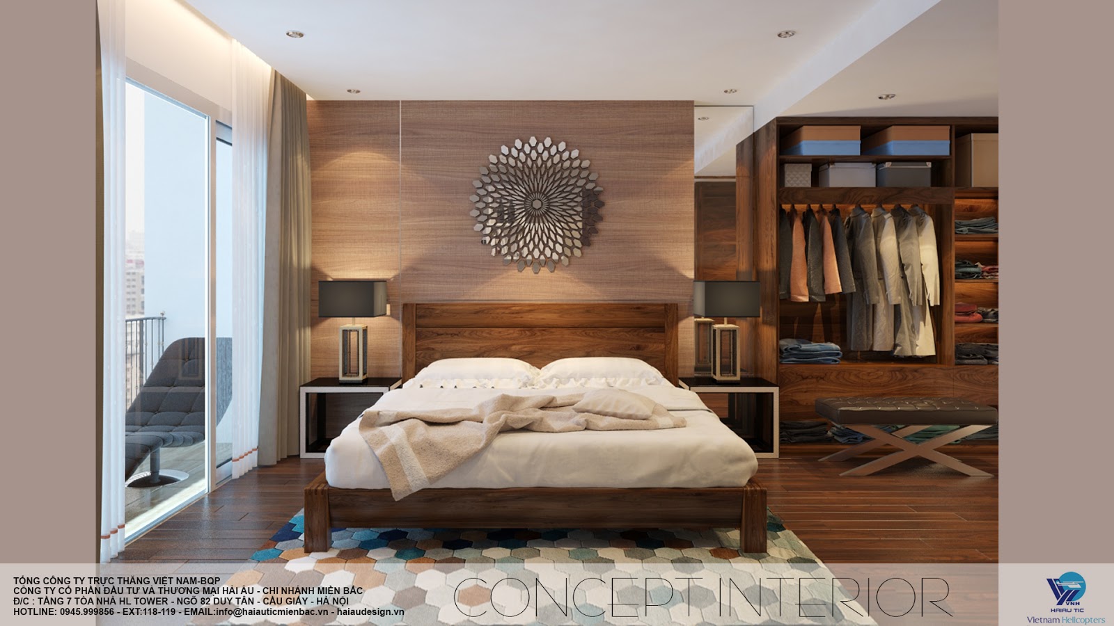 Thật không quá để nói gỗ óc chó thuộc dòng sản phẩm cao cấp với sự tinh tế, sang trọng mà dòng sản phẩm nội thất này mang lại. Thiết kế nội thất chung cư Eco Green với phòng ngủ của gia chủ với gỗ óc chó mang đến sự hiện đại hài hòa cùng nét truyền thống ấm áp. Để không gian nơi đây luôn mang đến sự lãng mạn ngọt ngào, mang đến những phút giây thoải mái xua tan những mệt mỏi của 1 ngày chào đón những hy vọng, tươi sáng cho ngày mới.