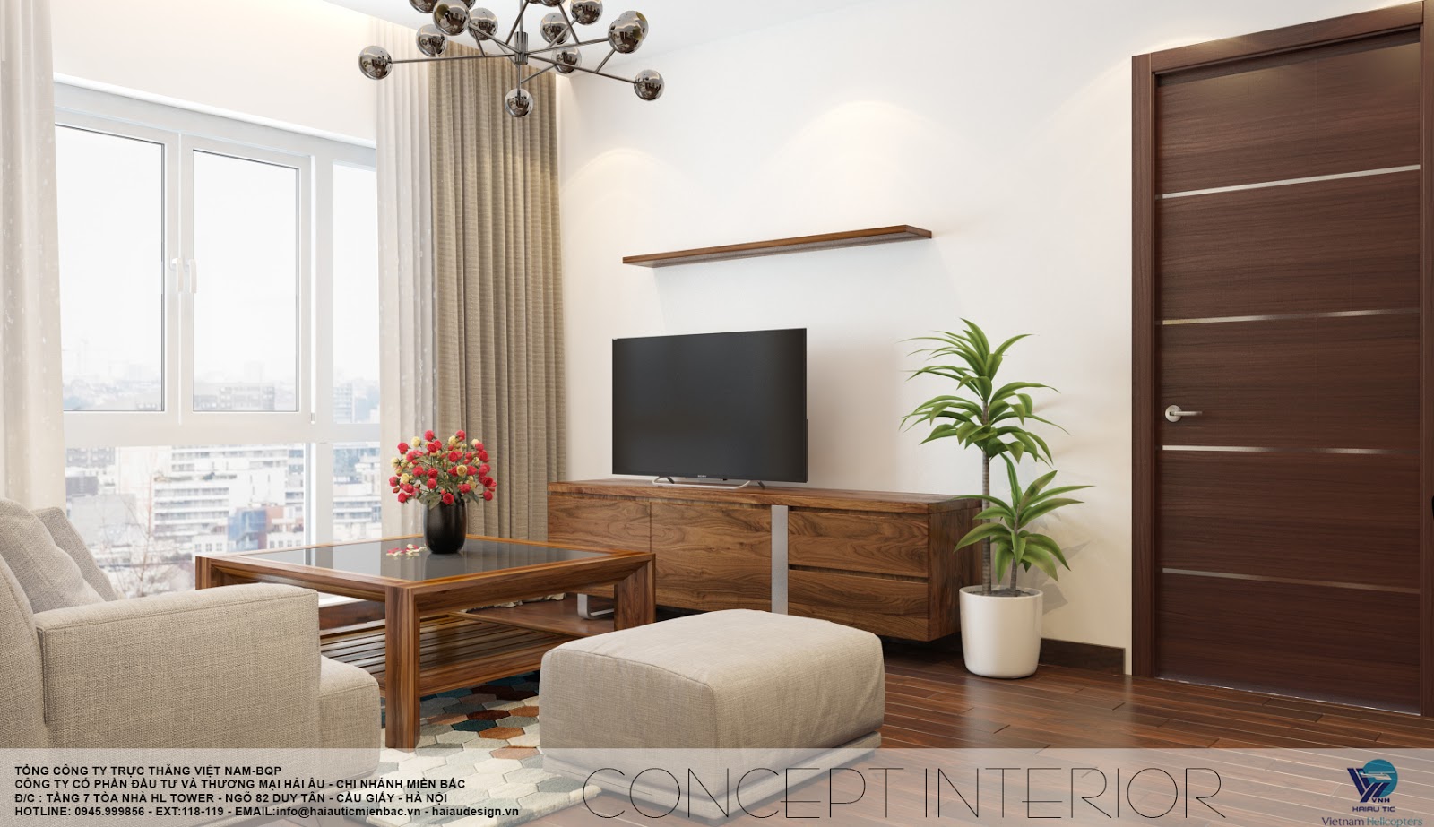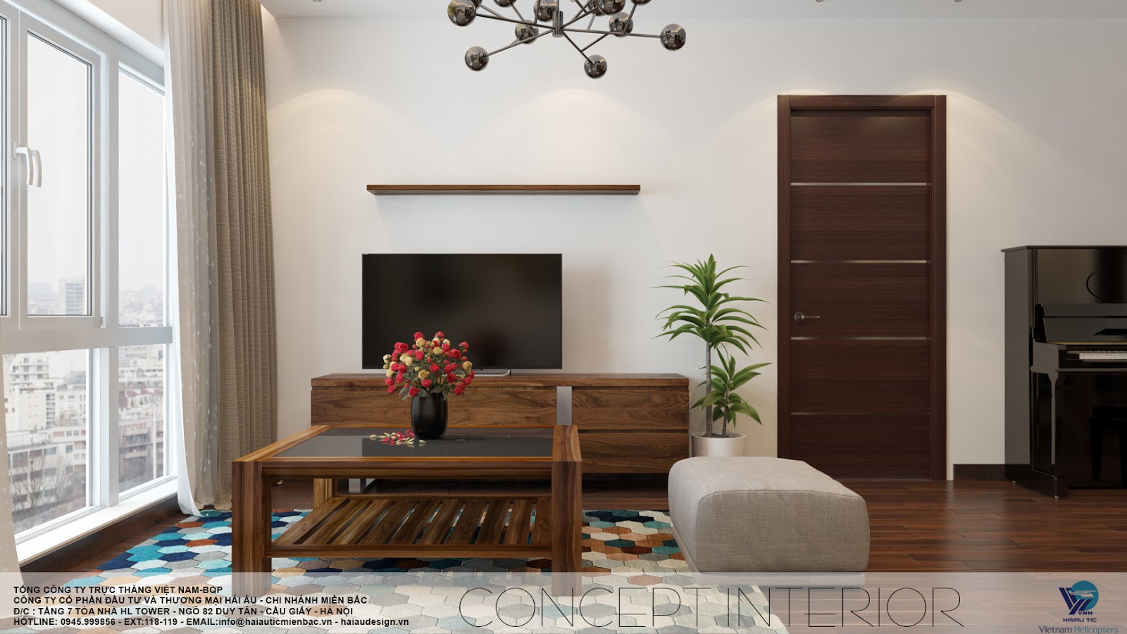 Việc thiết kế nội thất chung cư Eco Green với không gian chủ đạo là nguyên liệu gỗ óc chó kết hợp cùng với đó là cây xanh trong nhà mang đến sự tươi mới đến với ngôi nhà của gia chủ.